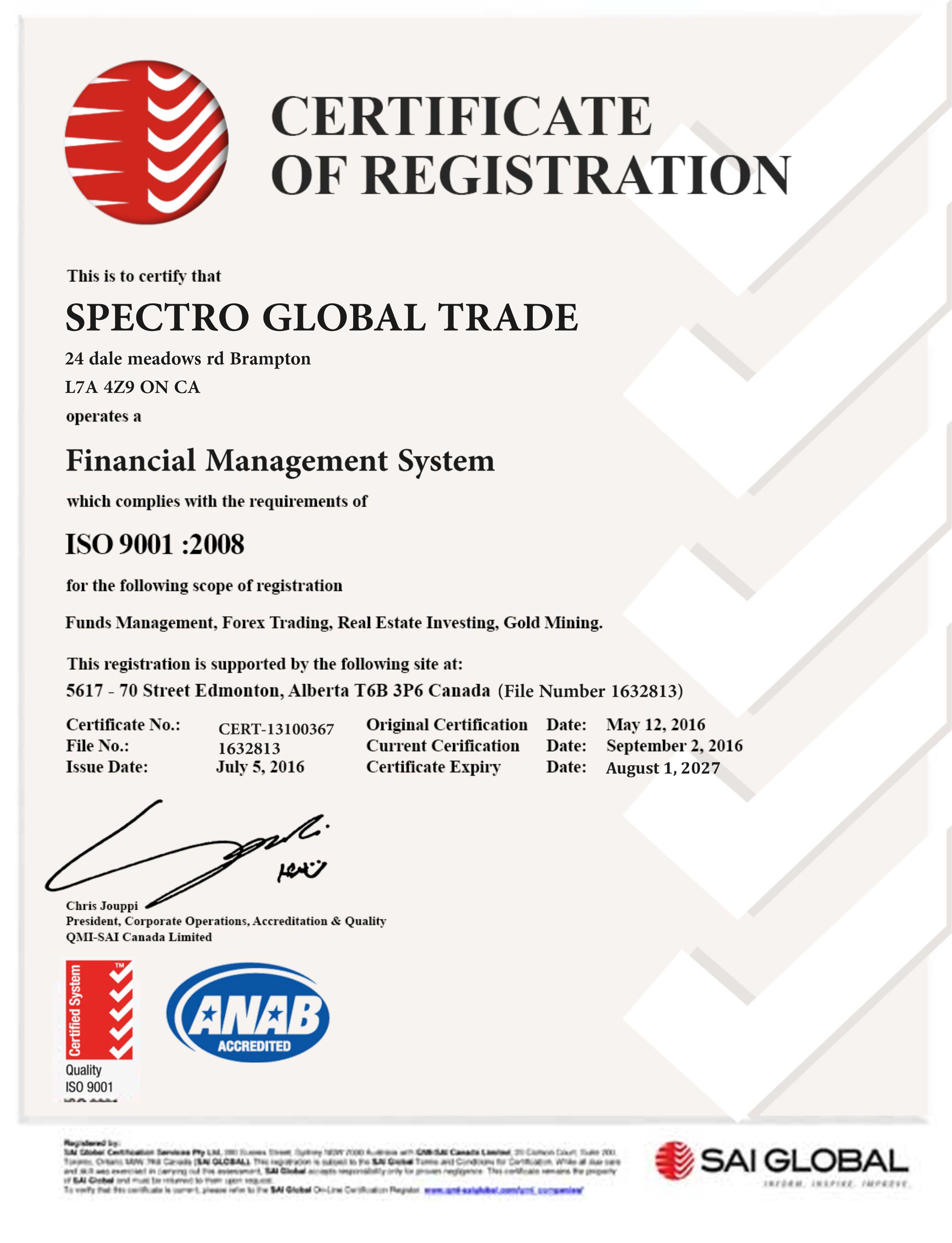 We are globally certified and licensed as a credible assets management platform for investment.